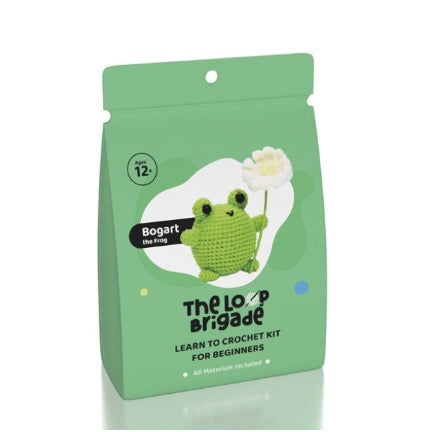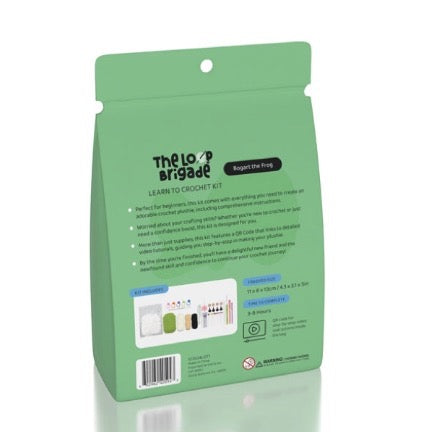 Perfect for beginners, this kit provides everything needed to create a lovable plush character—like Bogart the Frog! Featuring clear instructions and a QR code for step-by-step video tutorials, this kit makes learning crochet easy and fun.
