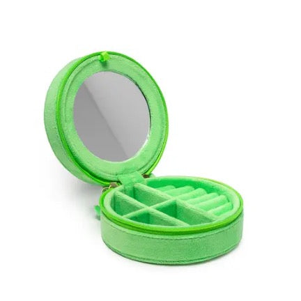The perfect travel companion, Jewelry Zip Case, offers many hidden slots and compartments. Great for all jewelry- Rings, Earrings, Necklaces and bracelets. Made from super soft velvet and has a built-in mirror.