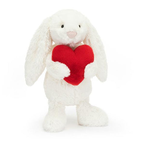 Holding a sumptuous cranberry heart, this Bashful Bunny gives incredible hugs, from Valentine's Day to a special anniversary.